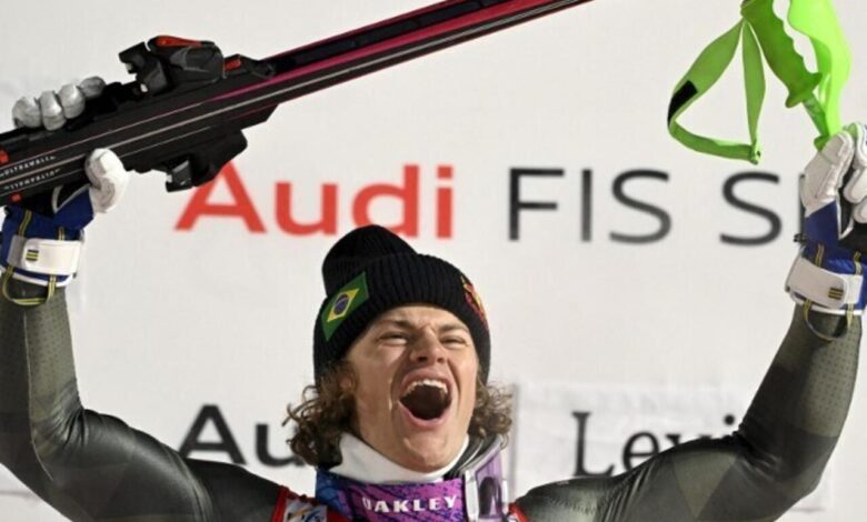 O esquiador brasileiro Lucas Pinheiro conquistou o título da etapa de Levi de esqui alpino no último domingo, garantindo uma vitória inédita!